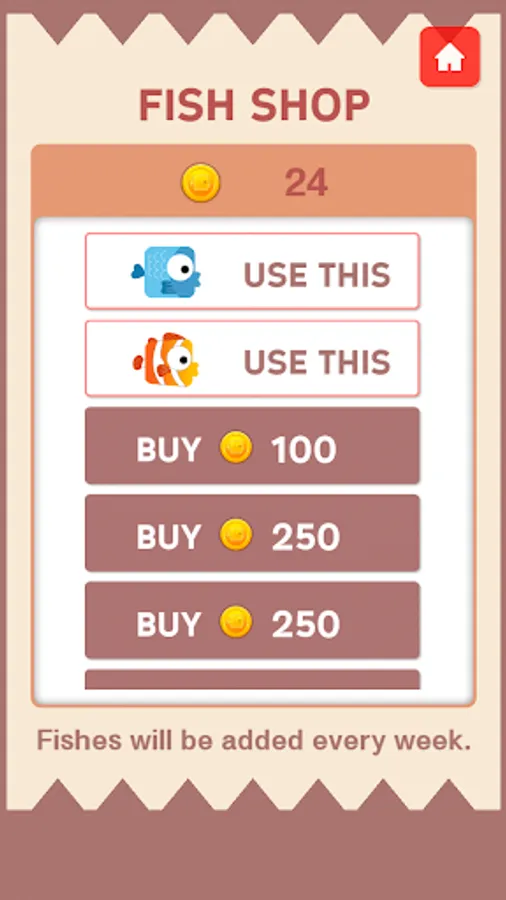 If the fish touches a side of screen, you can get a point and your fish will turn back to the other side.