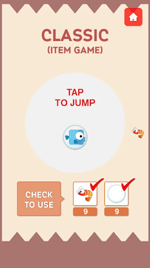 You can tap in any point of screen to jump your fish and don’t touch the spikes by your fish.