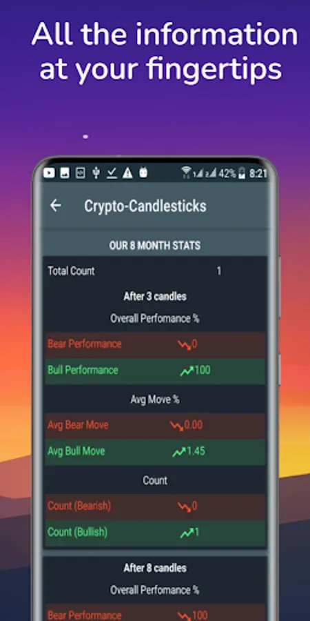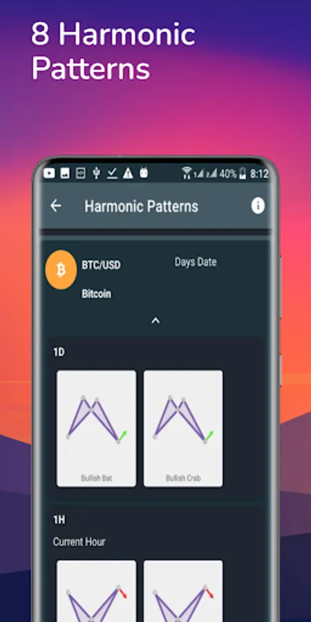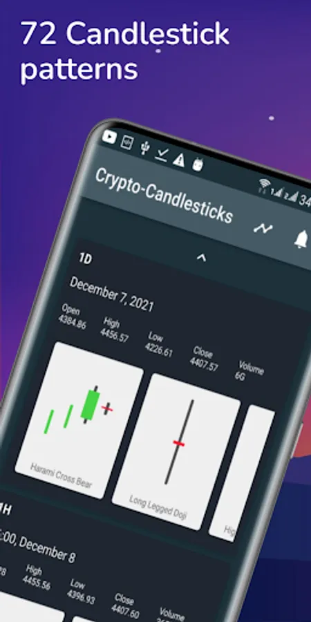 Scan the crypto markets for 72 candlesticks and 8 different types of harmonic patterns. Enable notifications for your preferred candlesticks and harmonic patterns, and get notified when they are available.