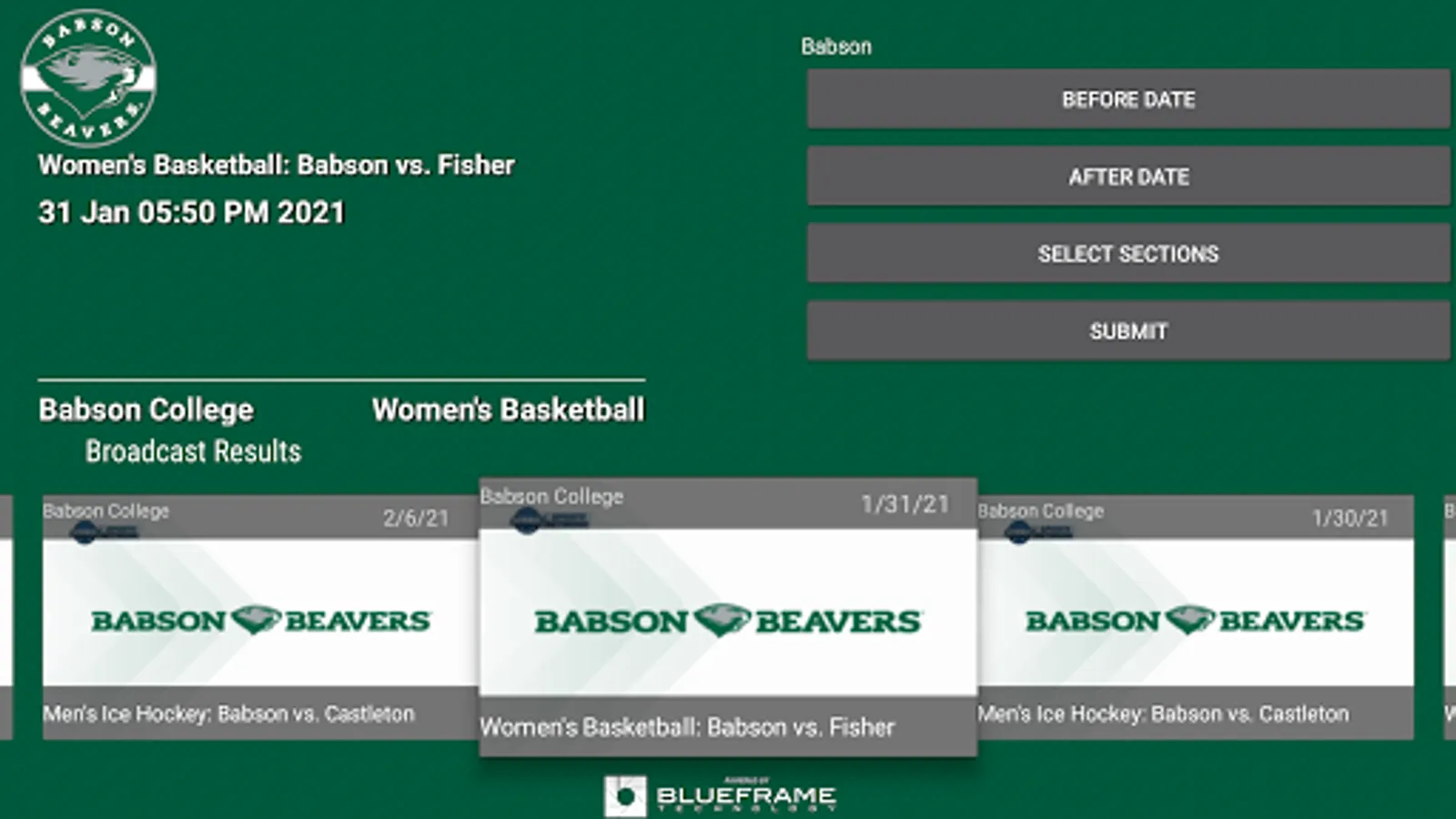 The Babson College Sports Network Android app gives you quick and easy access to your favorite Babson College live and archived events. With broadcasts produced by Babson College, the Babson College Sports Network Android app is the go to destination for Babson College sports. The Babson College Sports Network app is a partnership between Babson College and BlueFrame Technology.