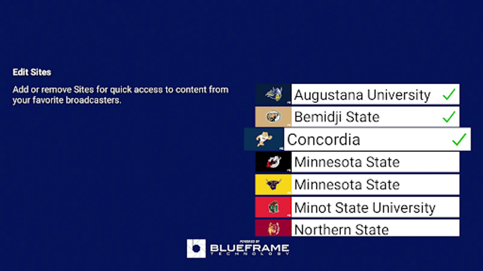 The Northern Sun Intercollegiate Conference Android app gives you quick and easy access to your favorite local live and archived events. The Northern Sun Intercollegiate Conference app is a partnership between The Northern Sun Intercollegiate Conference and BlueFrame Technology.