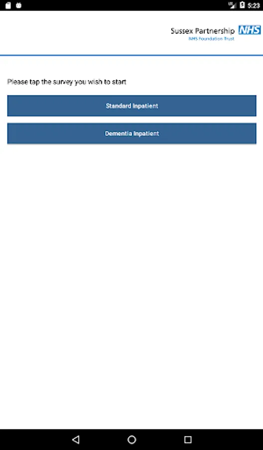 This survey app is to be used by clients of Sussex Partnership NHS Foundation Trust to rate quality of care and services received
