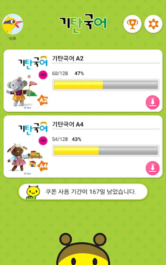 You can use unlimited 20 learning activities of A ~ D level, which is the foundation of Korean language and Korean language, in the Kiltan Language Smart Learning Journal.