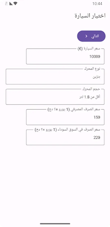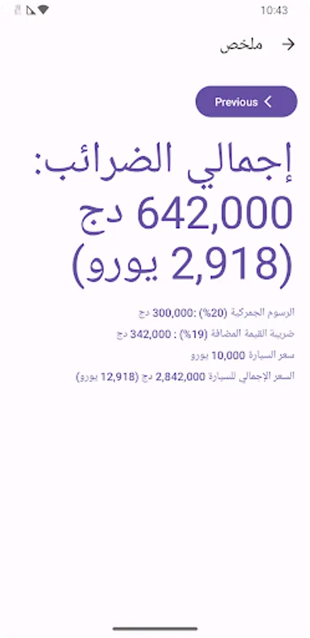 The application calculates customs duties when importing vehicles less than 3 years old to Algeria