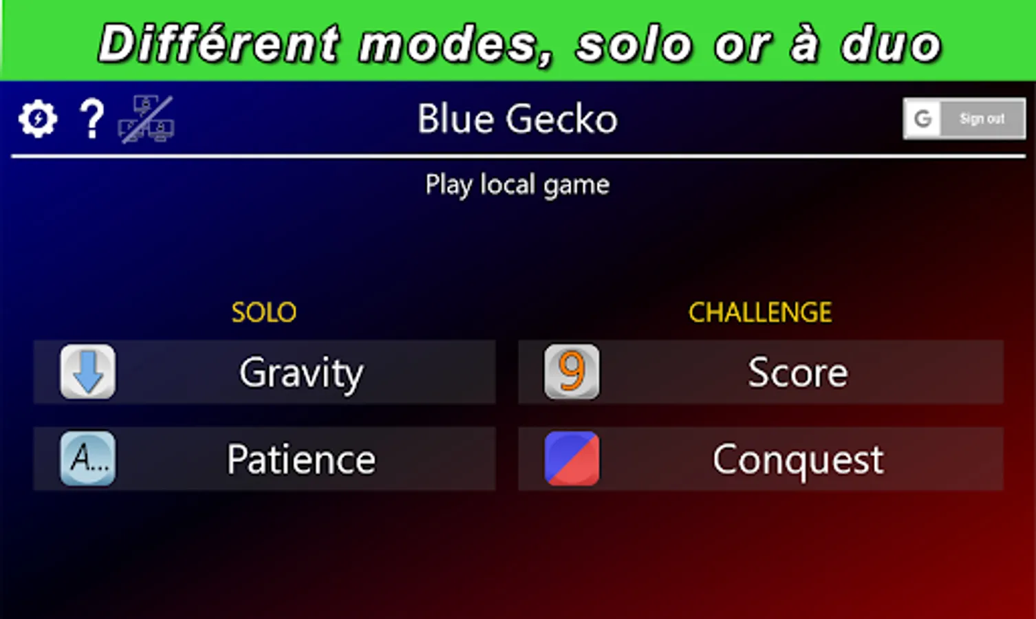 Play alone in GRAVITY or PATIENCE or against the AI โโof the application in SCORE or CONQUEST