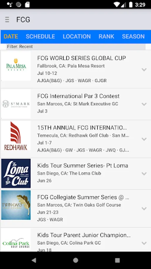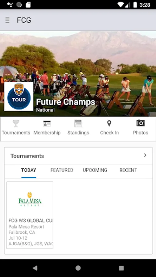 • View FCG tournament info, tee times, leaderboards and standings.