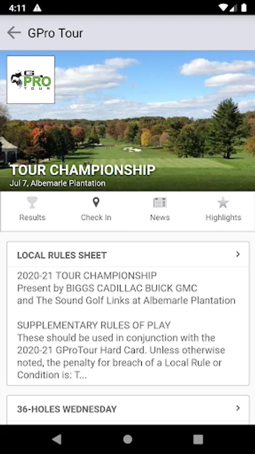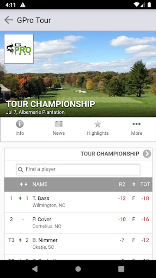 • View GPro Tour tournament info, tee times, leaderboards and standings.