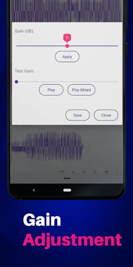 * Users can play the mixed audio of all the loaded and recorded files in the mixing screen. The progress can be seeked using a seekbar. Also segments can be selected from the mixed audio.