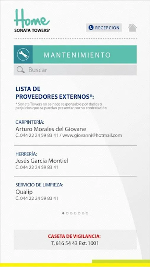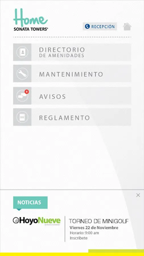 Application Towers residents Sonata contains catalog of amenities, list of suppliers, news and advertising.