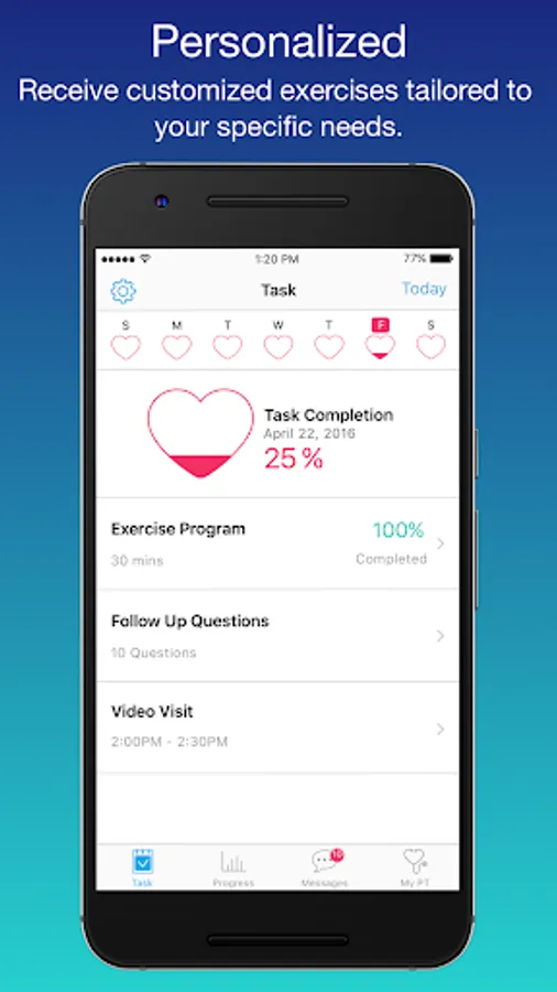 If you are a patient using this app with a physical therapist or rehabilitation provider, we hope our app becomes a natural part of your healthcare program. As soon as your provider sends you a new treatment or updates your plan, you’ll be notified right away! Your plan will include number of reps, hold times and any other notes your provider wishes to include.