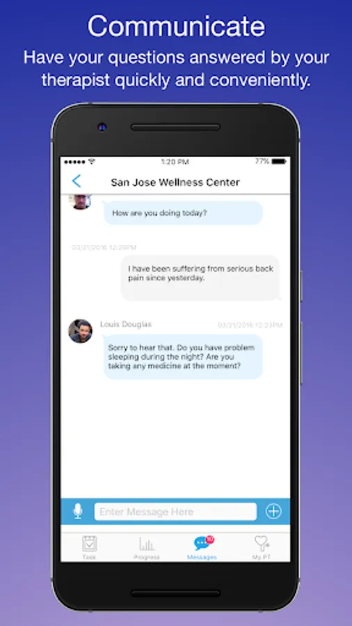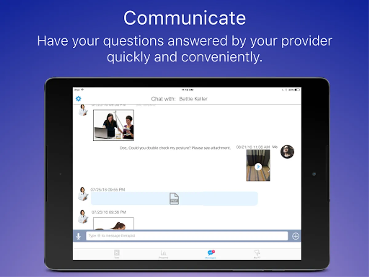 You and your provider can communicate with each other using in-app messaging. You can send picture and video files as well as audio messages to one another.