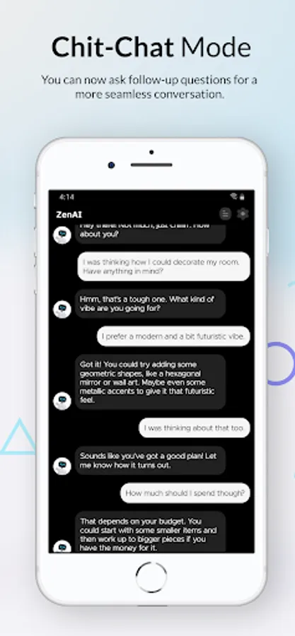 2. Chit-Chat Mode – Keep the conversation going with Chit-Chat Mode. By allowing ZenAI to remember your previous messages, you can seamlessly continue your conversations without having to repeat yourself. Whether you're chatting with customers or friends, Chit-Chat Mode makes it easy to build and maintain meaningful connections. Try it out today and see the difference for yourself!