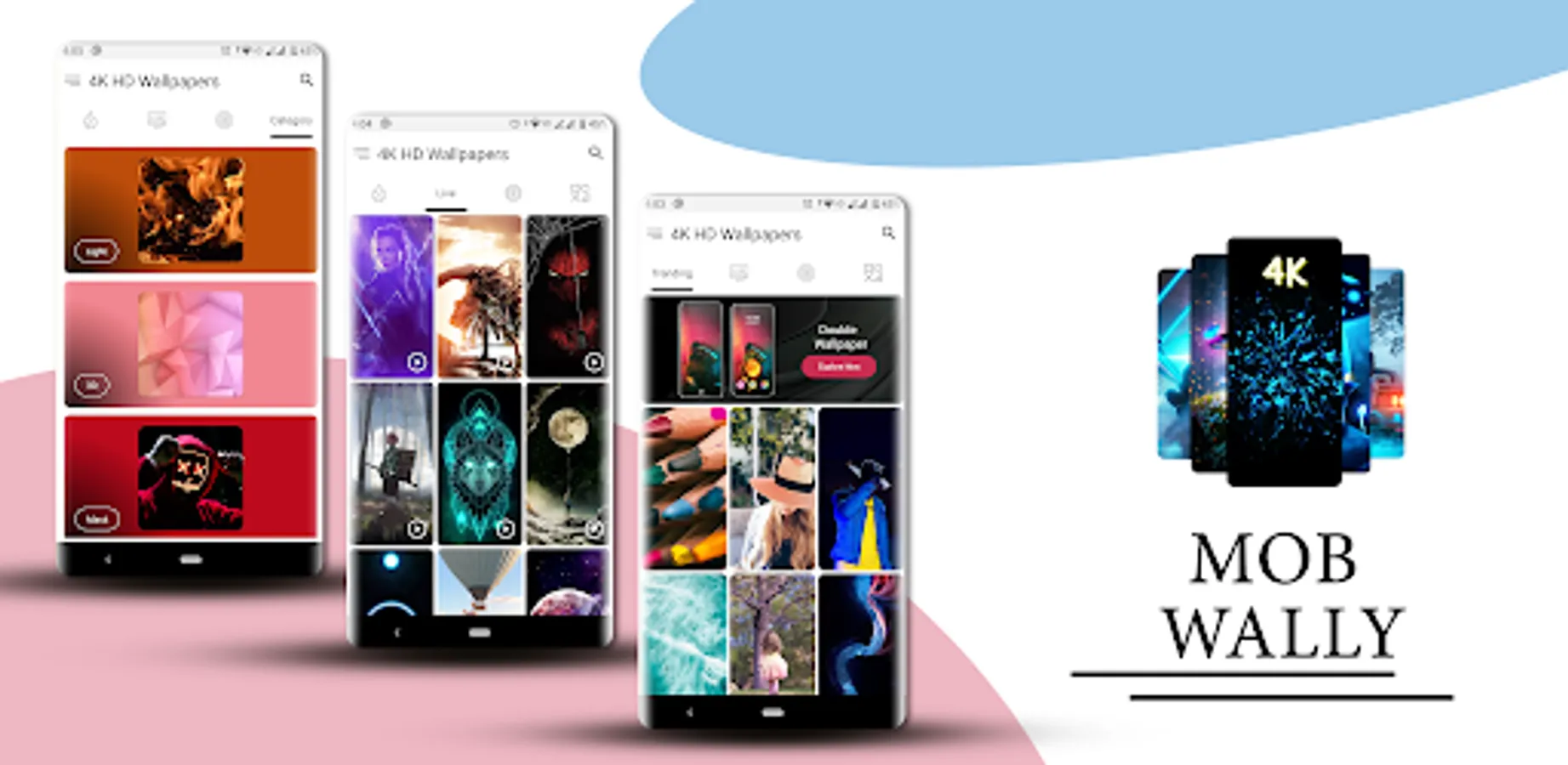 - App providing various wallpapers across 30+ categories.