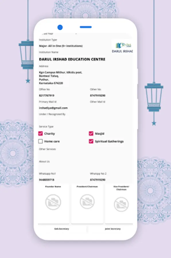 - Users will also get to know the Contact Details of the Administrator belonging to the Mosque along with Imam/Qatheeb Mobile No, Imam/ Qatheeb Mobile No, Email Id, Website Details)