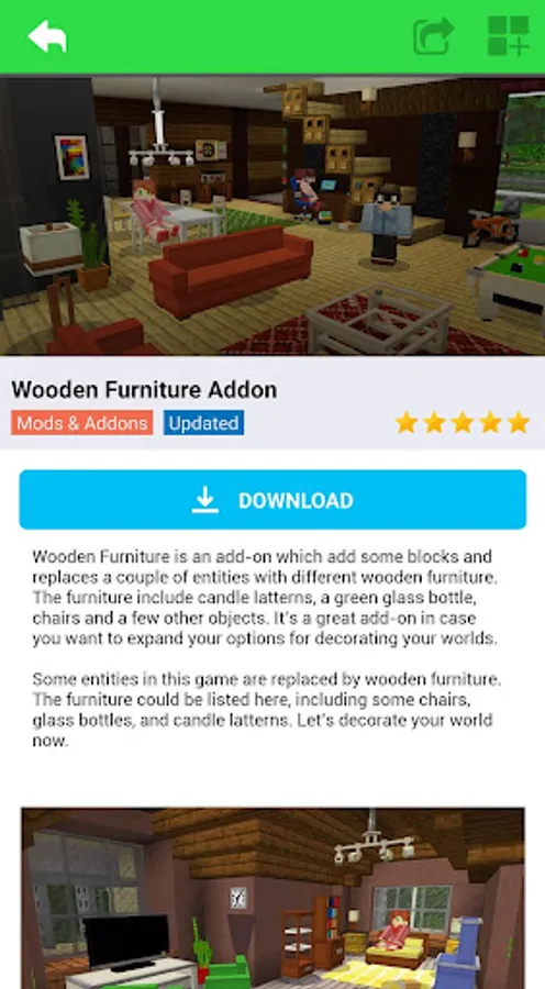Furniture mods and addons is an tools which adds or moving some blocks and replaces a couple of entities with different wooden furniture.