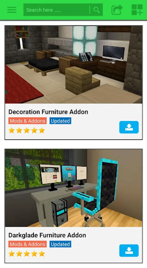 Mcpe recently has the ability to create new furniture like Sofa, Television, Computer and Notebook, Drum, Cabinet, Fridge, Oven, BBQ Grill, Bathtub, Toilet, Electric Fan, Air Conditioner, Statue, Radio, Tynker, Table, Chair, Ceiling Light, Stool, Blender, Stereo, Blinds, Presents, Stone, it has classic and modern furnitures. Lots of house hold possibilities such as Lamp, Guide, And much more !!