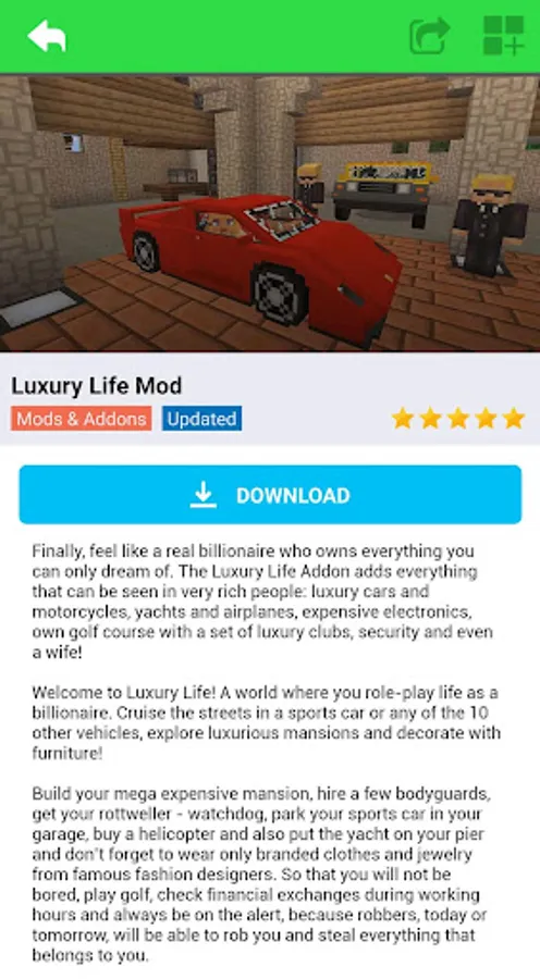 This Furniture mod adds new coolest decoration and functional furniture in the Minecraft game. Each item has a recipe! You can create them in your tynker survival world! To will make your buildings even more beautiful. Try this funny mods for mcpe today!