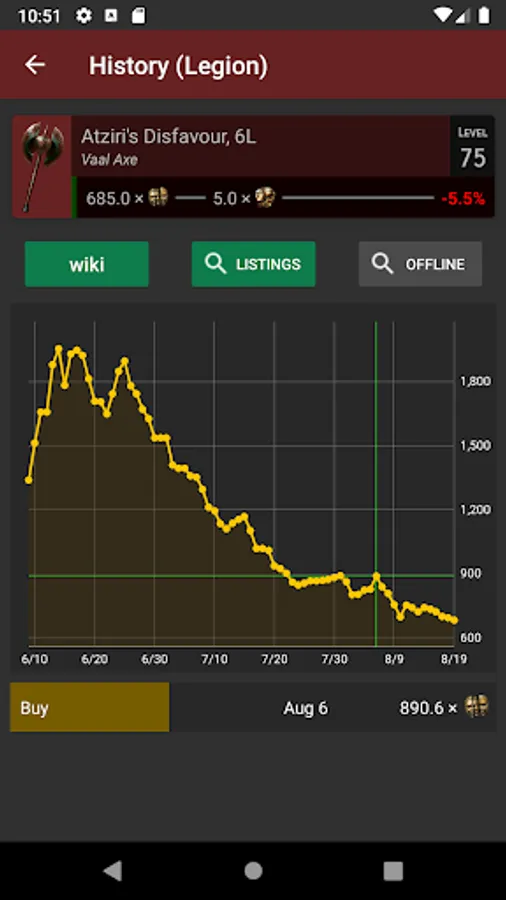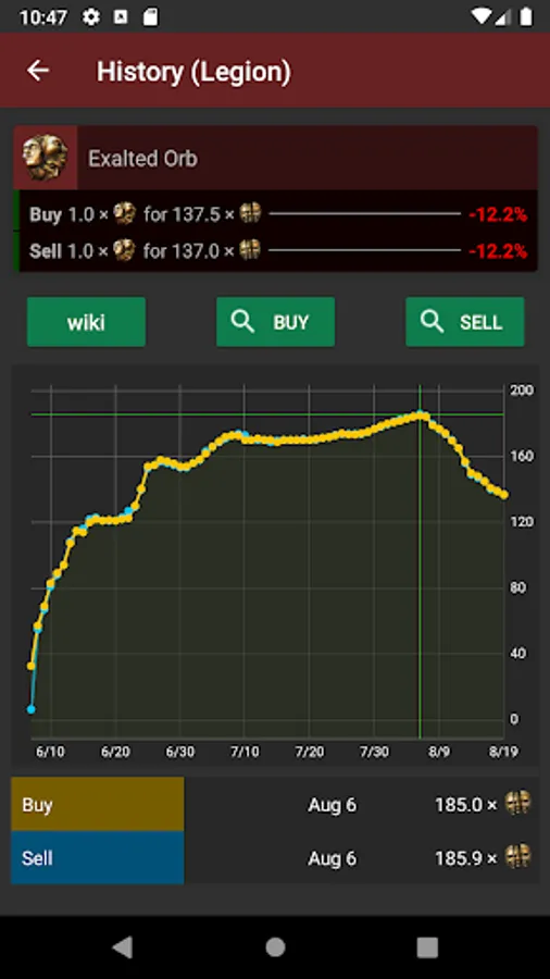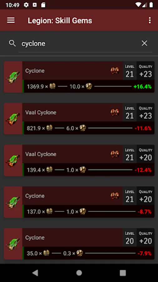 Inspired by the popular web app, poe.ninja, all trading data for Path of Exile is available at your fingertips. With this app, you may keep yourself up to date on today's currency exchanges (in Chaos Orbs) for every currency item, and monitor the fluctuating prices of items of different categories (unique flasks, maps, prophecies, etc.). You may also dive deeper into historical trading data by viewing charts for how prices of currencies and items have changed over time.