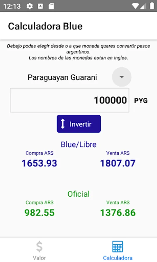 It also has a calculator to convert any other currency using the free market price.