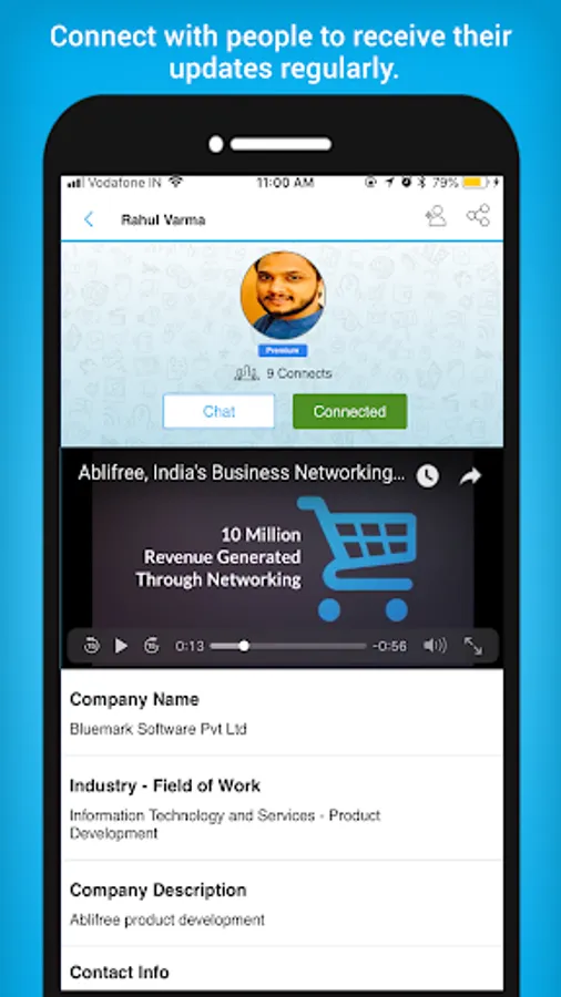 In hunt for new customers wherever you go? We want you to do exactly the same. Now no need to meet each and every person to exchange business information. Ablifree does it for you. Its unique feature automatically shares your profile with other Ablifree users around you. And vice versa. This feature works like magic when you are surrounded by hundreds of people in an event and you can get connected to all of them just in a single click! So now open Ablifree wherever you go and keep meeting new customers and clients.