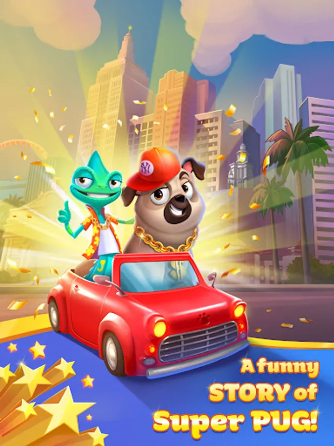 The most pug-tastic of all pet games is finally here, so join the adventure with Super Pug Play a story match-3 puzzle that’s on a whole new level, one that stands out from all the rest.