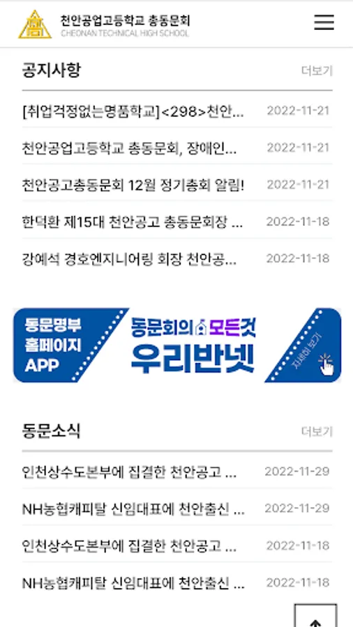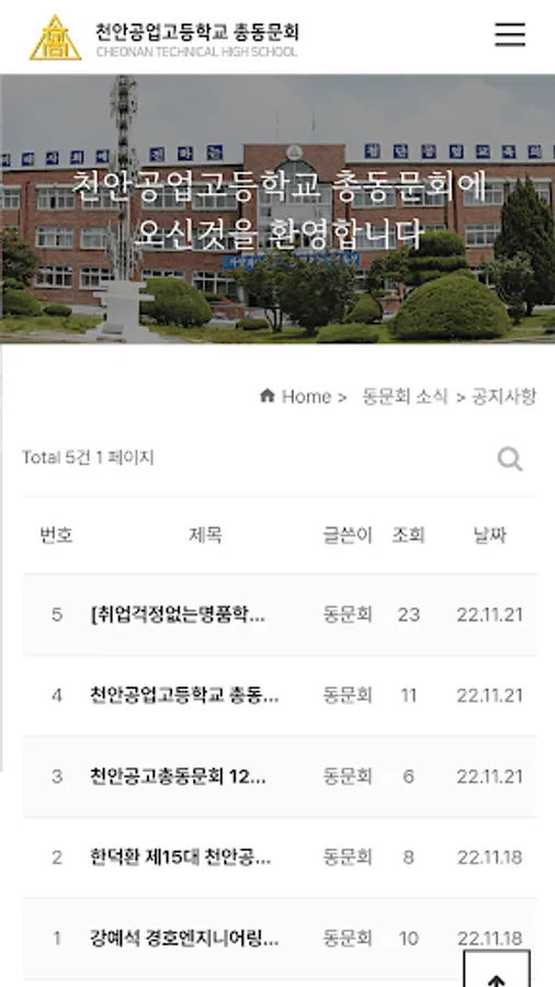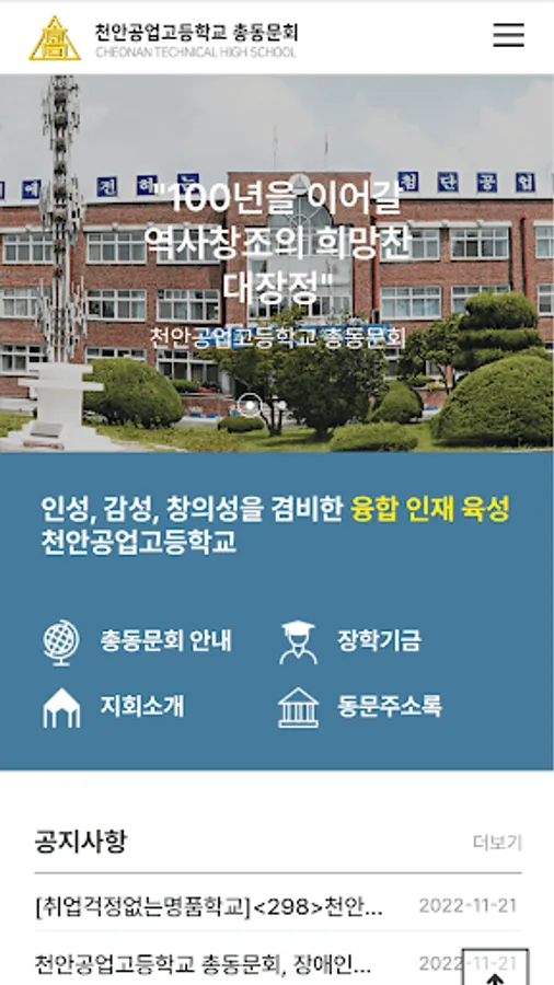 This application is freely available to all alumni who graduated from Cheonan Technical High School, and supports free communication and network strengthening among Incheon Machinery alumni members, such as introduction and announcements of the general alumni association, alma mater news, event information, alumni congratulations and condolence notifications, and alumni company introduction. .