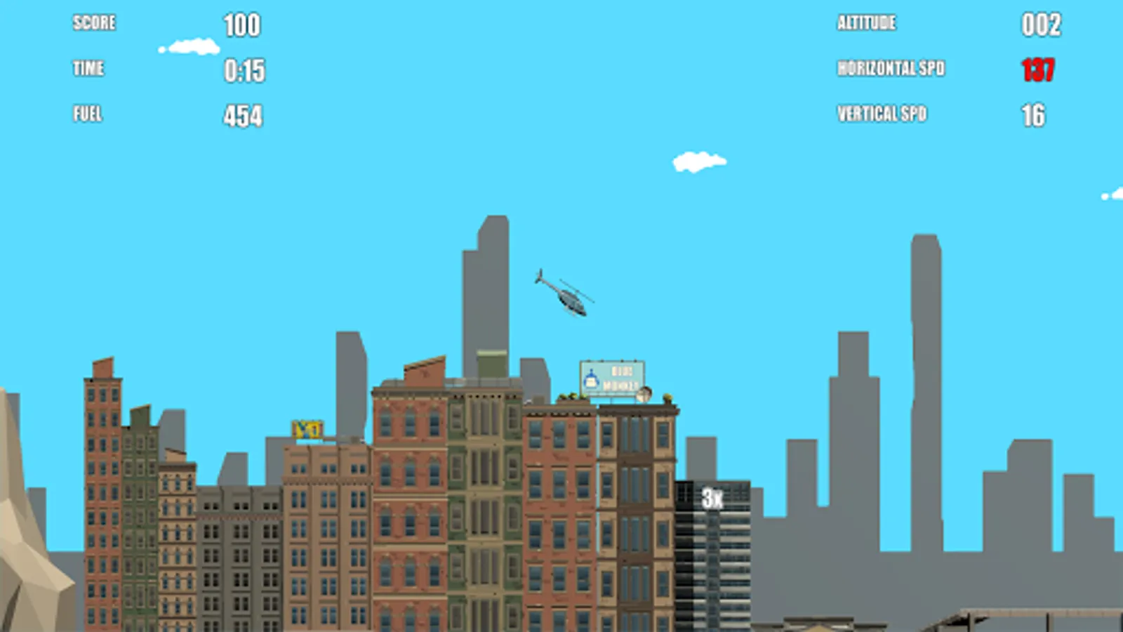 Landing Chopper is a helicopter simulation game. Your mission is to land the helicopter on several city heliports and accumulating points.