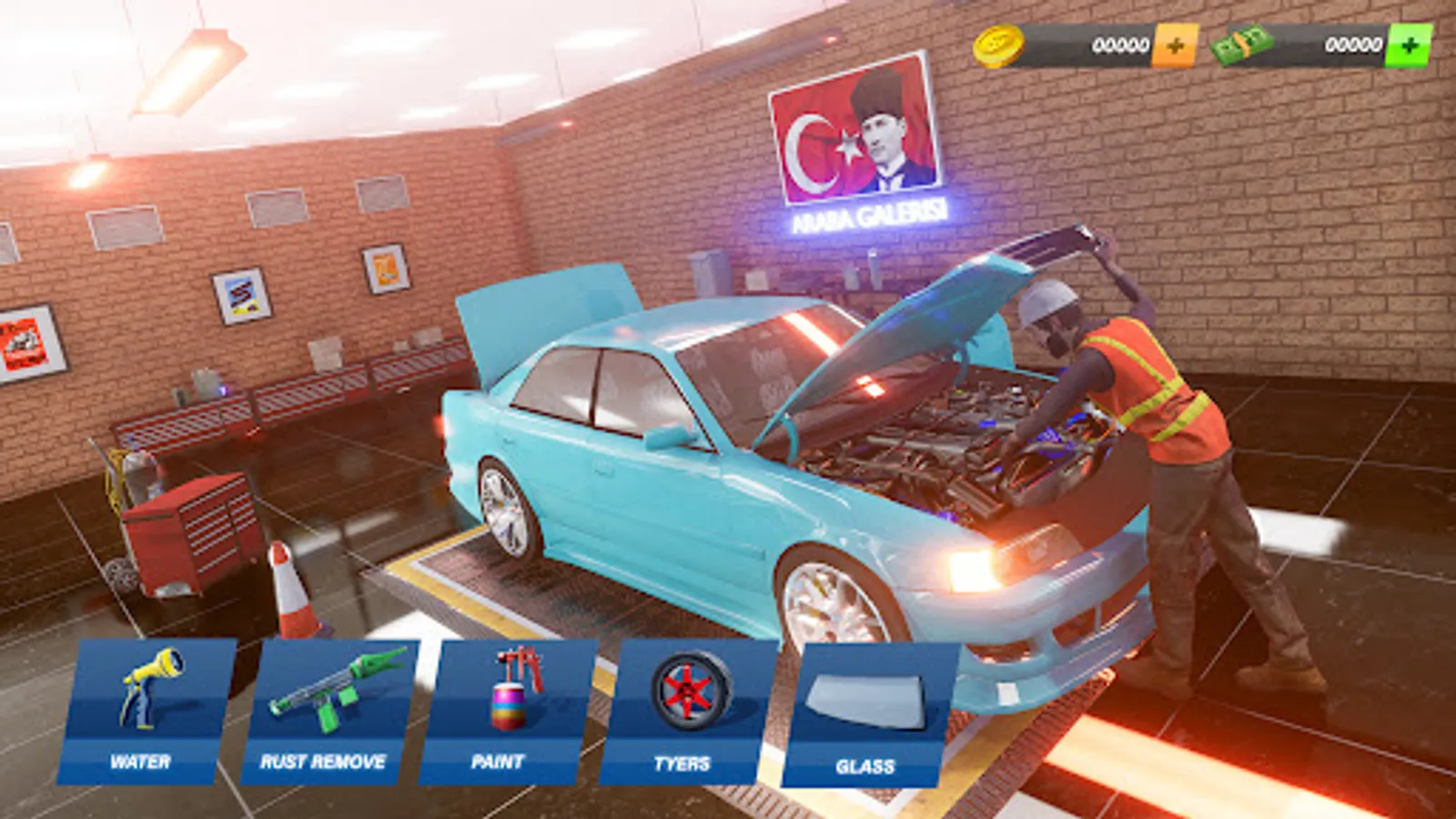 Work as car mechanic simulator on the interior, exterior and restore old cars