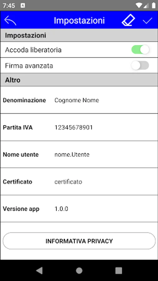• Simple electronic signature or Advanced electronic signature mode.