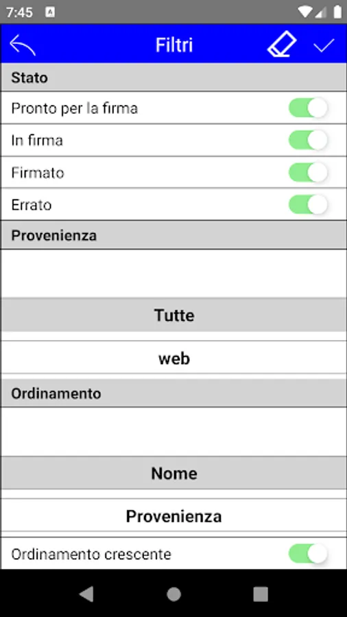 Thanks to the summary dashboard you can view, filter the list of documents and check their status: Ready for signature, In signature, Signed, Wrong.