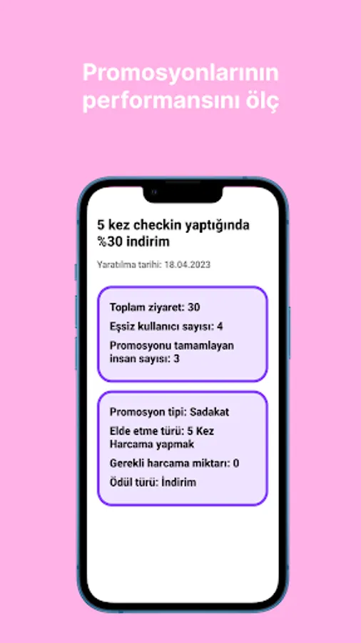 -Deatris kullanıcıları QR kod okutarak indirimlerden faydalanmaktadır. Uygulama içerisinde yarattığınız tüm promosyonları görüntüleyebilir ve performanslarını ölçebilirsiniz.