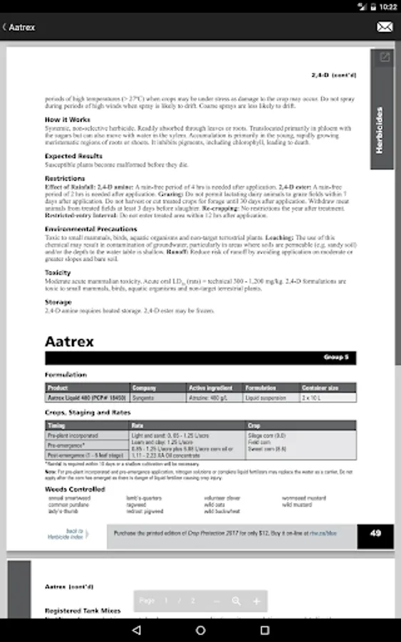 The BlueBook app is the most comprehensive, up-to-date guide for the selection and application of chemicals to protect your crop. Easy-to-use write-ups for all product registrations make finding information fast and efficient. The BlueBook app features the most current information, easy-to-use charts and tables for all your crop protection needs. This app is a valued crop protection tool for Western Canadian farmers.