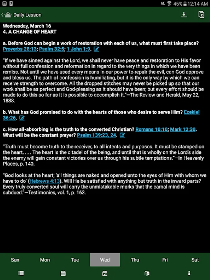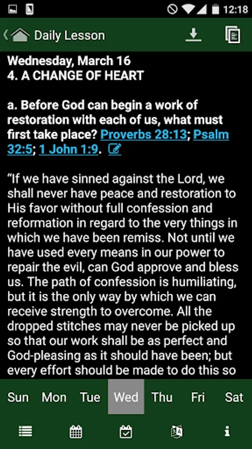 The purpose of this application is simply to put the Sabbath Bible Lessons in the hands of as many people as possible, giving them the opportunity to study the Bible whenever and wherever.