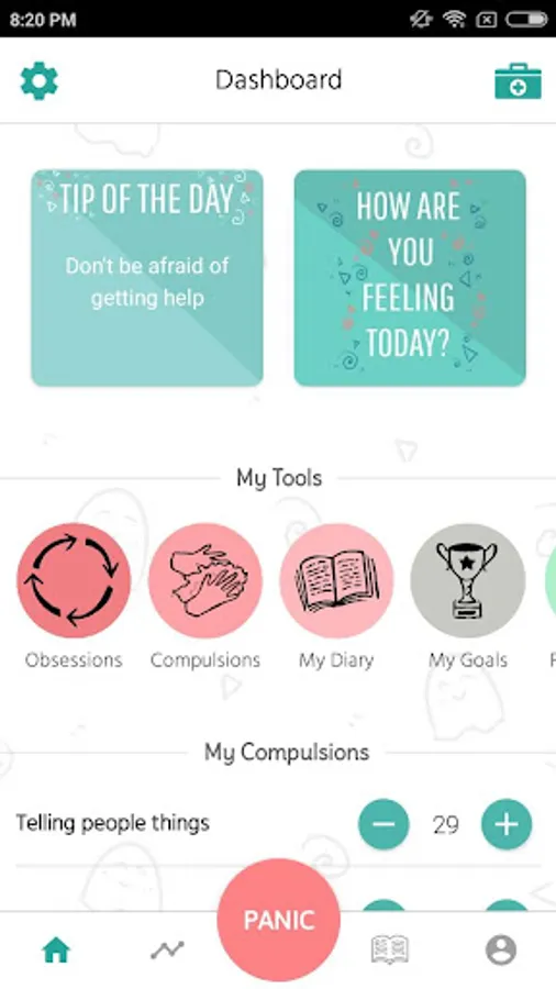 6. Getting External Support - You will also be able to designate certain support members whom you trust, who will be notified when you suffer an attack or have multiple compulsions and other situations where external help is critical. This ensures that you are not alone in your journey to conquer your OCD.