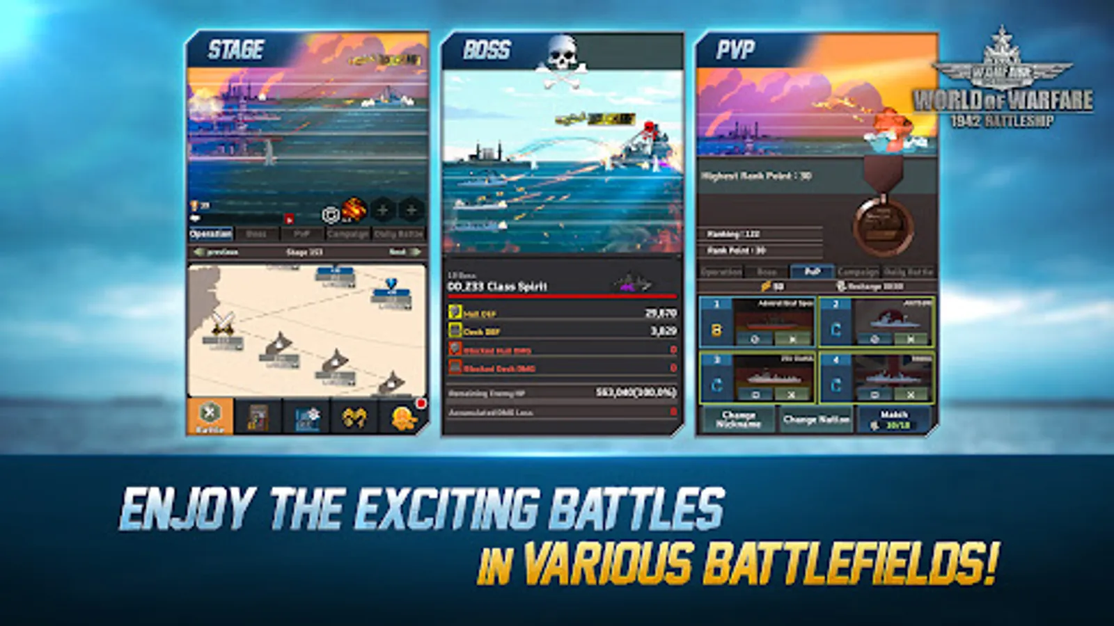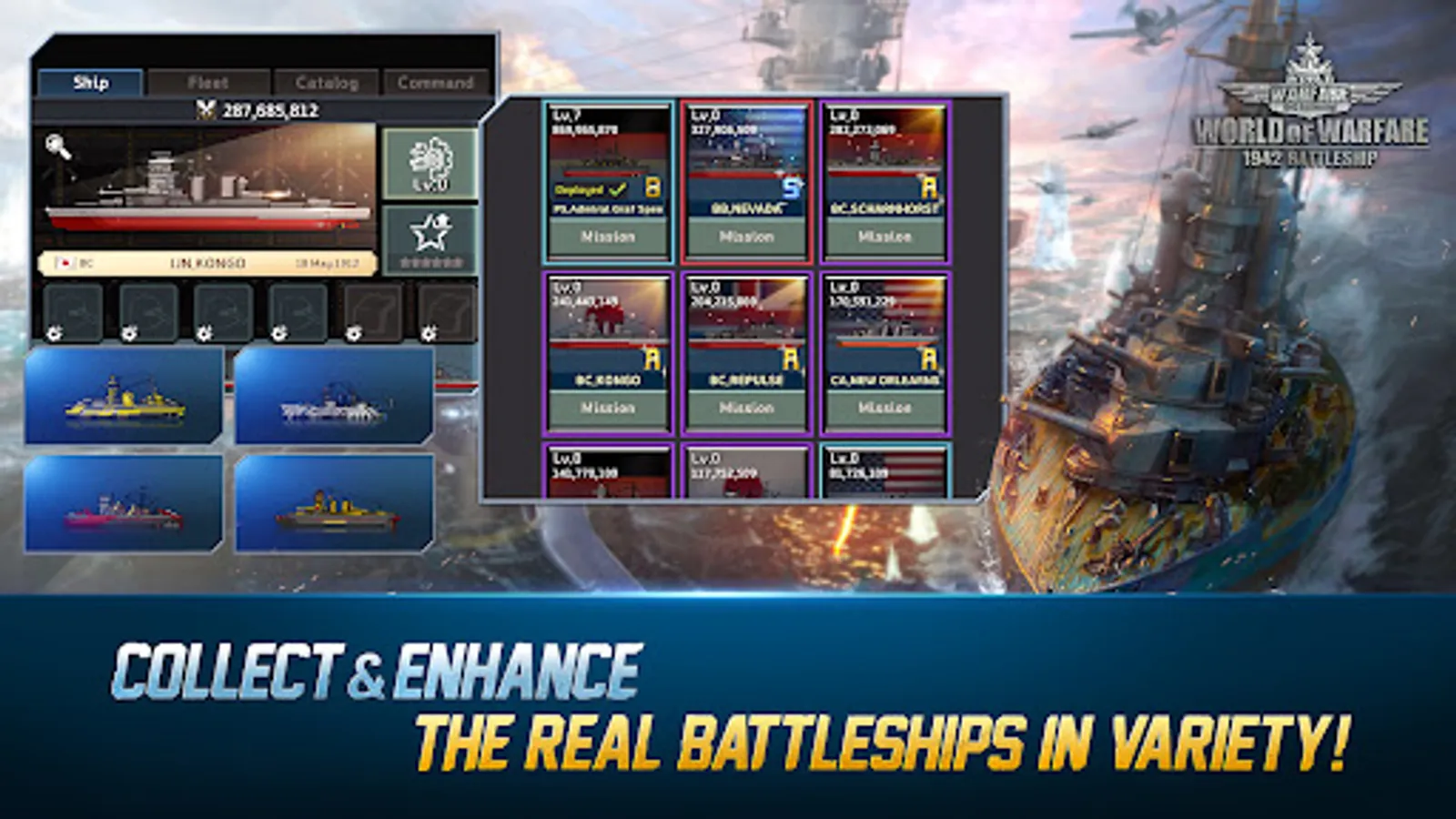 In "World of Warfare : 1942 Battleship", you can grow the strongest fleet in the most convenient way.