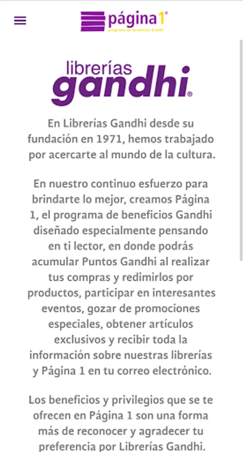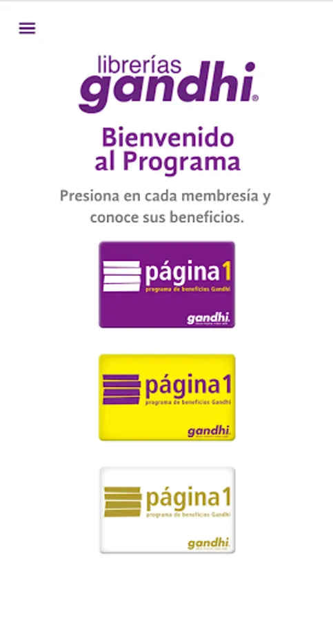 We present the Gandhi Benefits Program APP, Page 1, where you can: