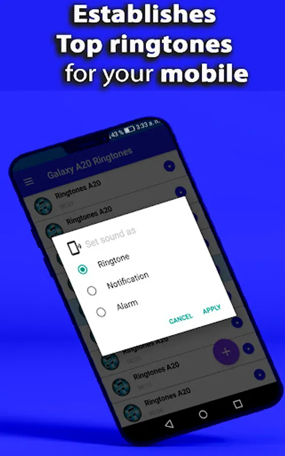 The best galaxy a20 ringtones application, download now so you can enjoy the samsung galaxy a20 ringtones, original and updated galaxy a20 ringtones, you can use anywhere in the world, the application is constantly updated with the best ringtones for galaxy a20, experts in sounds of samsung galaxy a20. You can navigate quickly and easily in the application, you will love the ringtones for samsung galaxy a20, they serve as notifications, alarms, call sounds. To correctly use the service samsung galaxy a20 ringtones you must be connected to an internet network either by mobile data or via wifi.