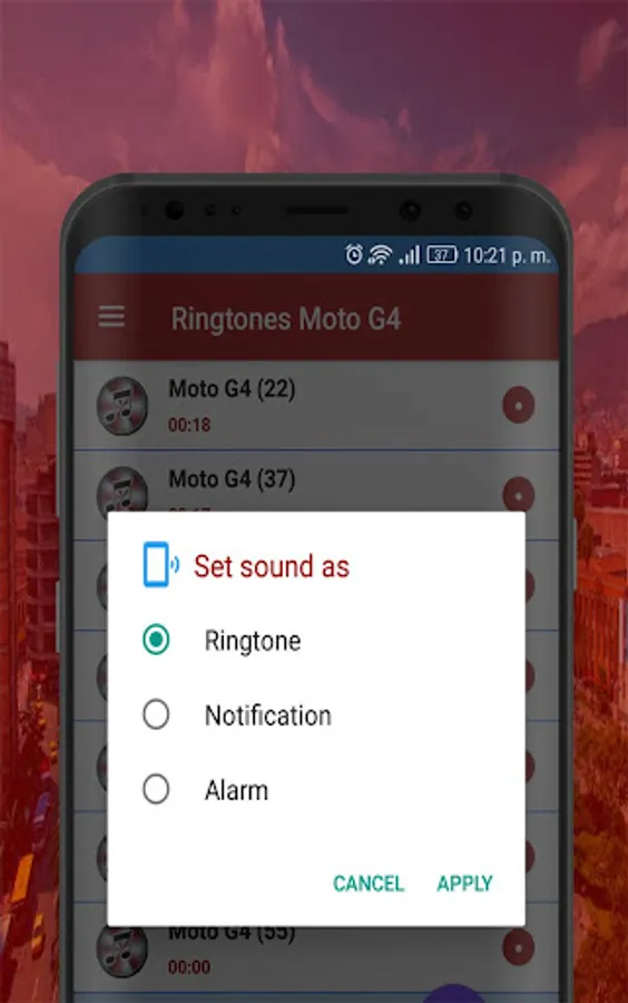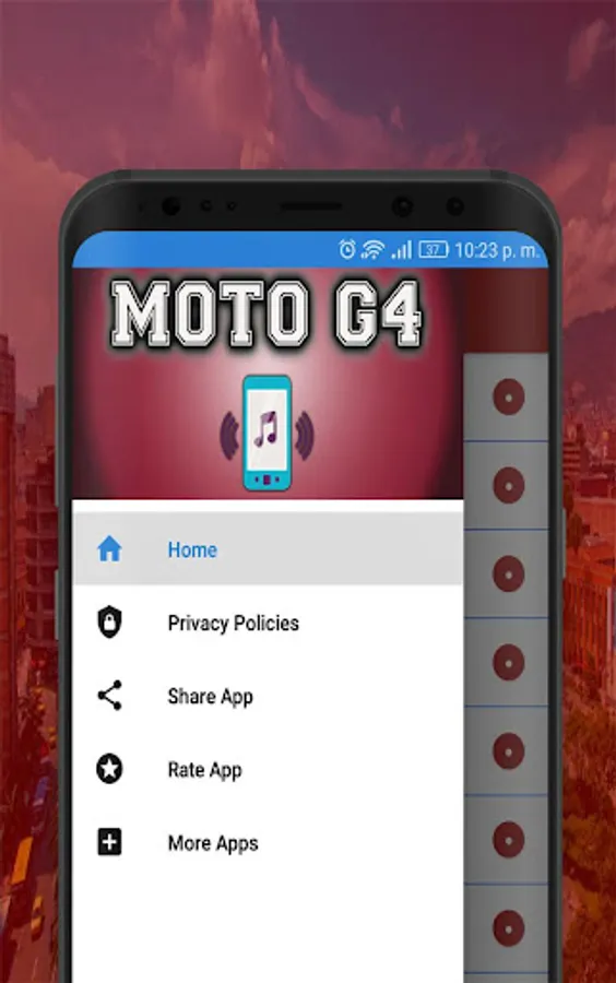 The best application of tones for moto g4 plus, download now so you can enjoy the tones for motorola g4 plus, tones for original and updated motorola g4, you can use anywhere in the world, the application is constantly updated with the best moto g4 plus for cell phone, sounds for moto g4 plus. ringtones for moto g4 plus, you will love the moto g4 plus ringtone app, they serve as notifications, alarms, call sounds. To properly use the moto g4 plus ringtone setting service you must be connected to an internet network either by mobile data or via Wi-Fi. tones for moto g5 plus