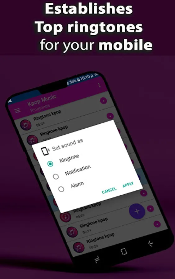 Quickly browse among hundreds of kpop ringtones for android, create unlimited lists of kpop sounds for calls, Use it for whatsapp, to be the attention in the place you are, also as kpop notification ringtones. Do not forget to take it into account as an alarm so that you start the day with the best energy of kpop music ringtones. Share with friends on social networks, Download and fully enjoy the best offline kpop ringtones application, This application allows you to customize ringtones for whatsapp kpop for cell phones and tablets, select your favorite ringtones, alarms, sounds and notifications since they are all in high quality , add them without downloading them, what are you waiting to download this kpop sounds app for calls that will meet your expectations. You need to know that this is an application with an internet connection, with incredible sound quality and the best that it is completely free best kpop ringtones.