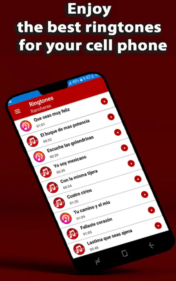 Download now and enjoy the new rancheras ringtones app, you can share with your friends the best ringtones for calls, you can tune in anywhere in the world, here you will find rancheras and the most updated corridos on the online market, all are available for your cell phone. You manage to catch up with the original vicente fernández rancheras list for Android mobile devices online, listen to the last minute popular music ringtones, the most hit, sound, the best rancheras for calls and share it with all your friends and family. Start enjoying ranchera tones for notifications, for whatsapp running ringtones or free notifications, rancheras without internet and use it as an alarm for your mobile, The easiest and simplest way to get the best old rancheras, download the application and you will not regret .