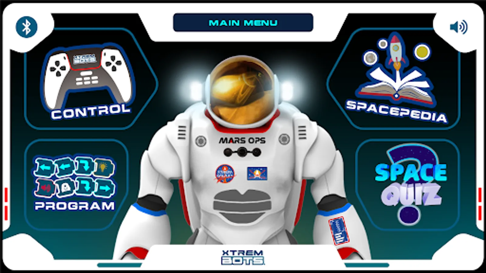 Features of the Charlie- The Astronaut App. Through the main menu you can activate the following functions: