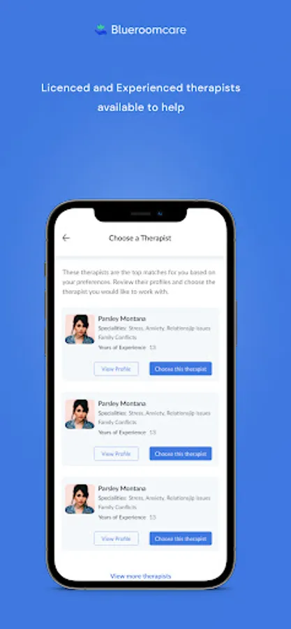 The Blueroomcare provider network has diverse licensed and accredited therapists from across different world regions. Our therapists are licensed, trained, experienced, accredited psychologists, marriage and family therapists, Christian counselors, clinical social workers, licensed professional therapists, or similar credentials, each with at least two years of hands-on experience. In addition, they have been qualified and certified by their state professional board and have completed the necessary education, exams, training, and practice.