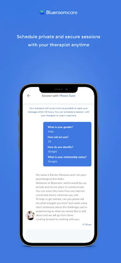 After filling out our questionnaire, you will be matched with a licensed therapist based on your needs and preferences, although this is only required for therapy sessions. Finally, you and your therapist will get your own secure and private “Blue room” where you can message your therapist or psychological first aider from any internet-connected device, wherever you are.
