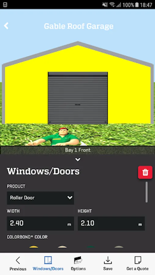 Ranbuild’s new Shed Builder app allows you to create and customise your own shed or garage in 3D. Create your perfect shed or garage and tailor it as you see fit. Choose from any of the great Ranbuild shed, garage, barn or carport buildings. You can set the size of your shed, roof pitch, as well as change the colours of the COLORBOND® cladding of the roof and walls to match your surroundings. Add in windows, P.A doors and roller doors then personalise your shed further with additional accessories.