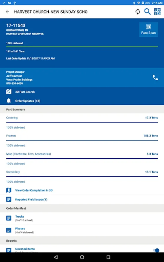 • Document and report field issues to Varco Pruden using the camera and communication features