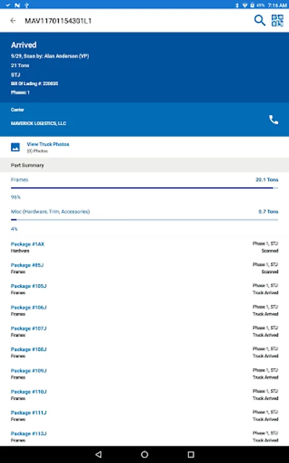 • View and search detailed truck and phase manifests