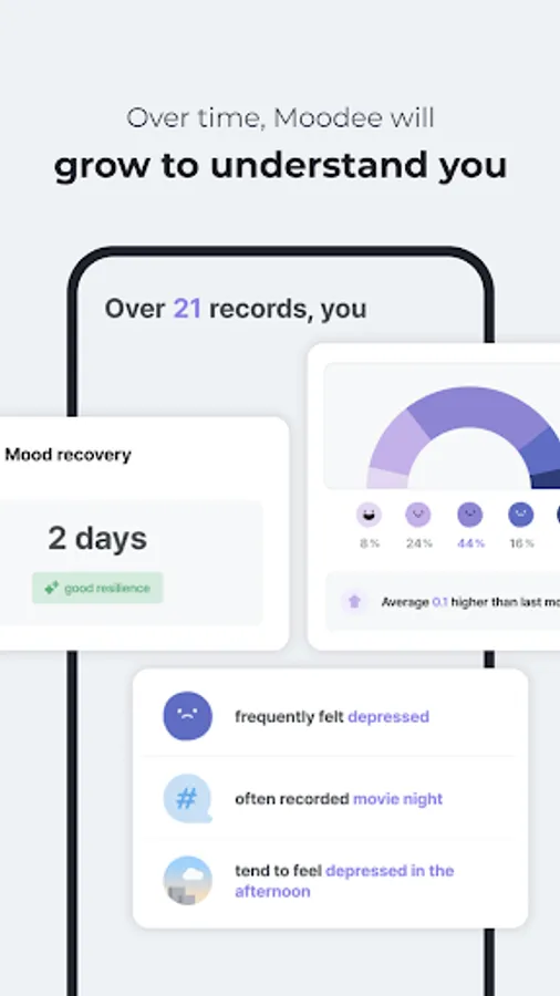 Check out stats about you, from frequently recorded emotions to emotion timetables. These analyses will help you gain a deeper understanding of yourself.