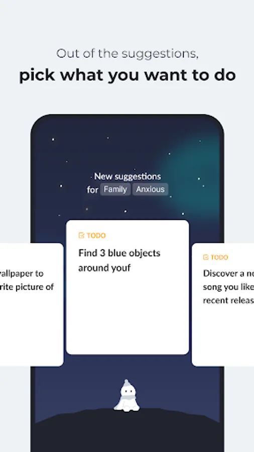 Whether you're feeling upbeat or low, get recommendations for how you can make your day better. You can add the ones you like to your to-do list.
