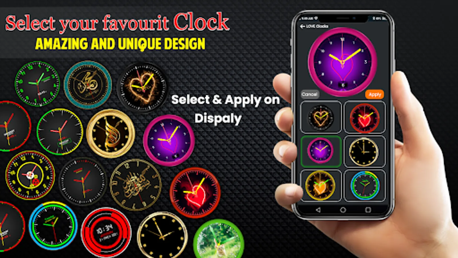 From the setup menu you can choose from many types of digital clock live wallpaper. Night clock watch app display on comes with a set of backgrounds to choose from your own live wallpaper image gallery. The position and size of the clock live wallpaper for lock screen in this watch app can be changed and you can also turn on / off the battery saver, analog clock widget and calendar. You can use clock live wallpaper & lock screen in your phone.