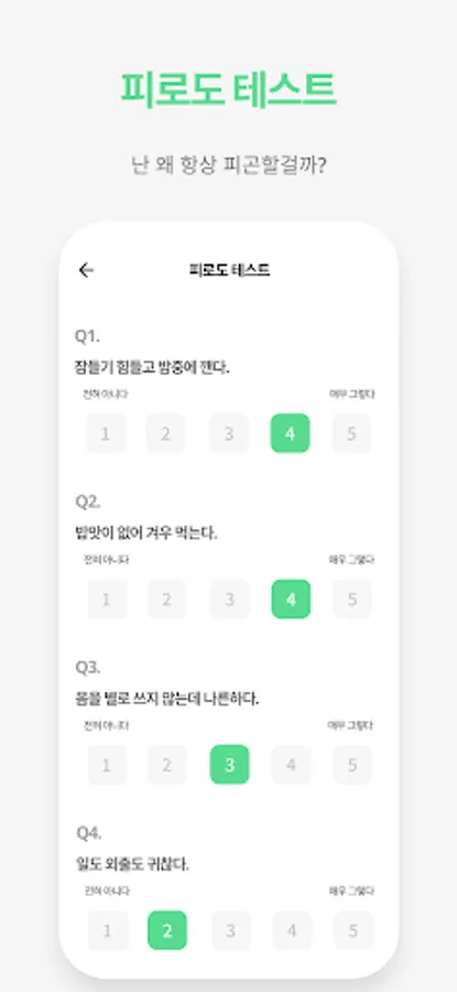 - Fatigue test: 10 questions (takes 30 seconds)